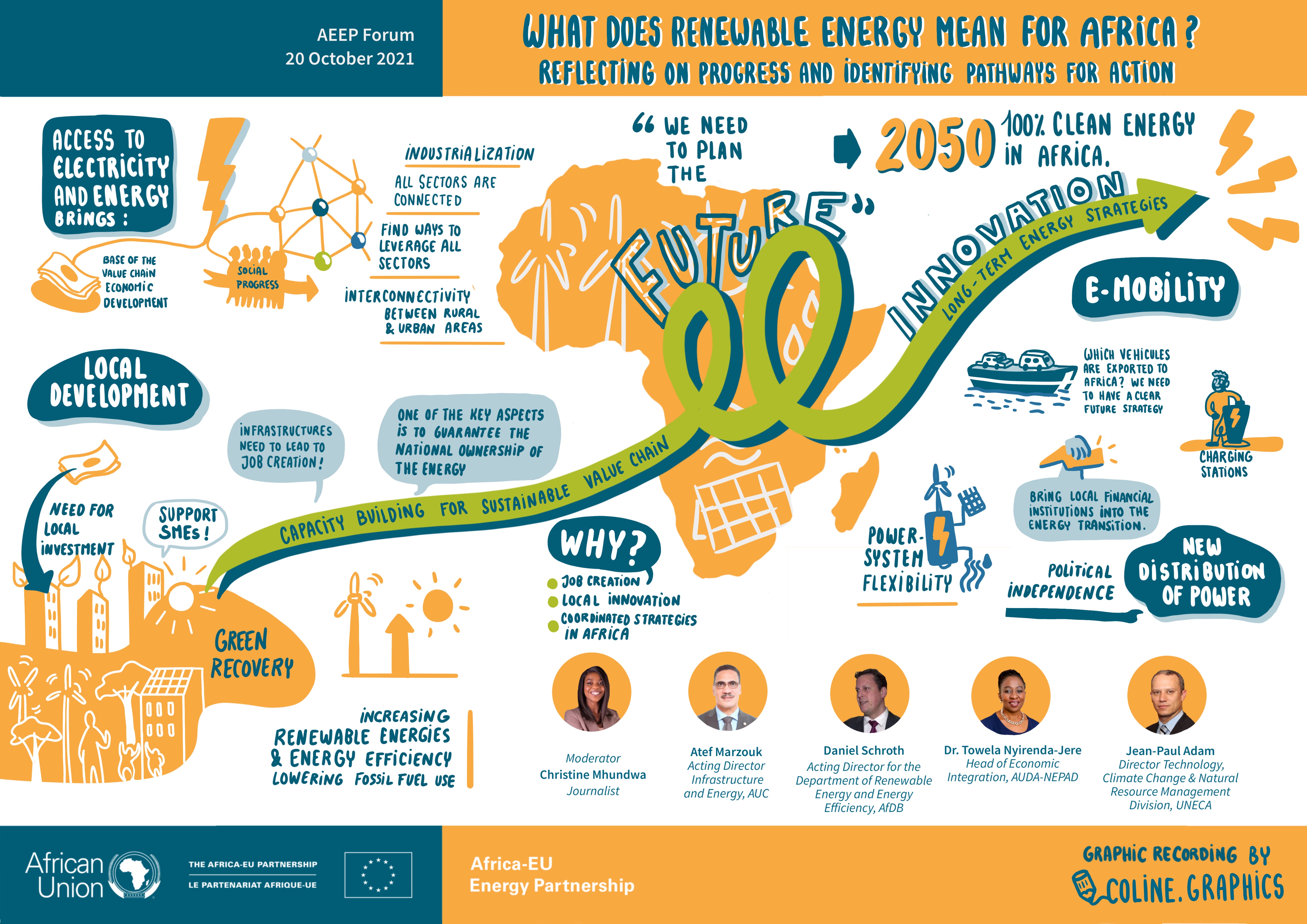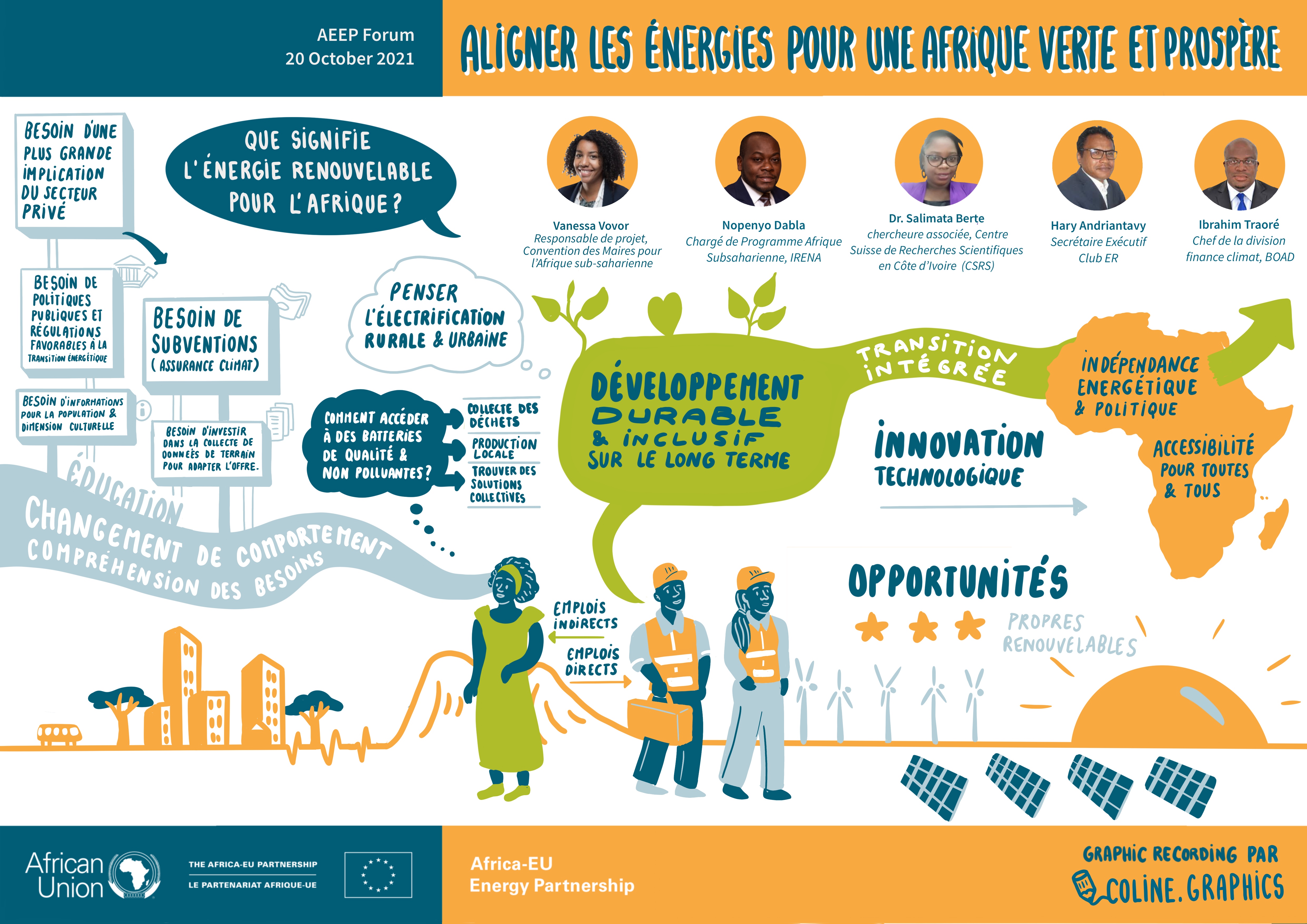 During this one-day forum, ideas and conclusions on sustainable energies for Africa were proposed and debated. I graphically recorded 2 panel discussions and the keynote speech in French and in English.